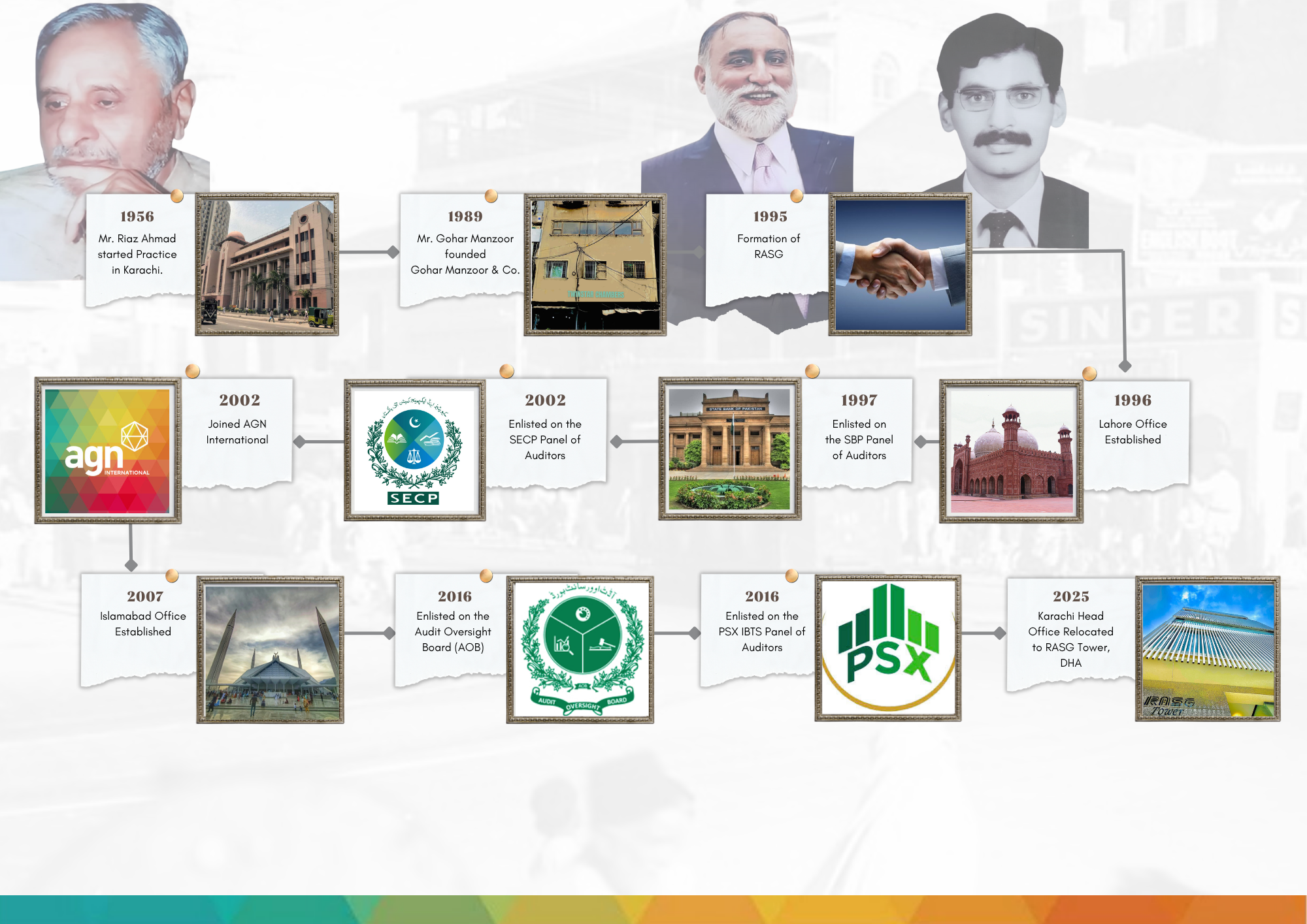 RASG is ranked amongst the leading firms in Pakistan and enjoys an excellent professional reputation within the business and industrial circles. We have, today, separate departments specializing in Taxation, Corporate Matters, Auditing, Accounting, Investigations, Business and Financial Consulting.